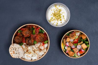 (falafel, houmous, boulette vegan)