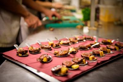 Généralement, nous préparons nos plats en cuisine avant le service. Mais si vous le souhaitez, il est tout à fait possible de cuisiner sur place pour apporter une touche spectaculaire et interactive à votre événement.